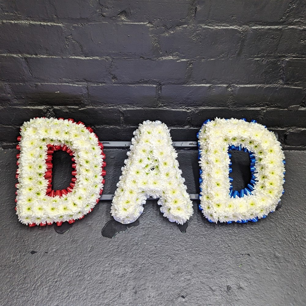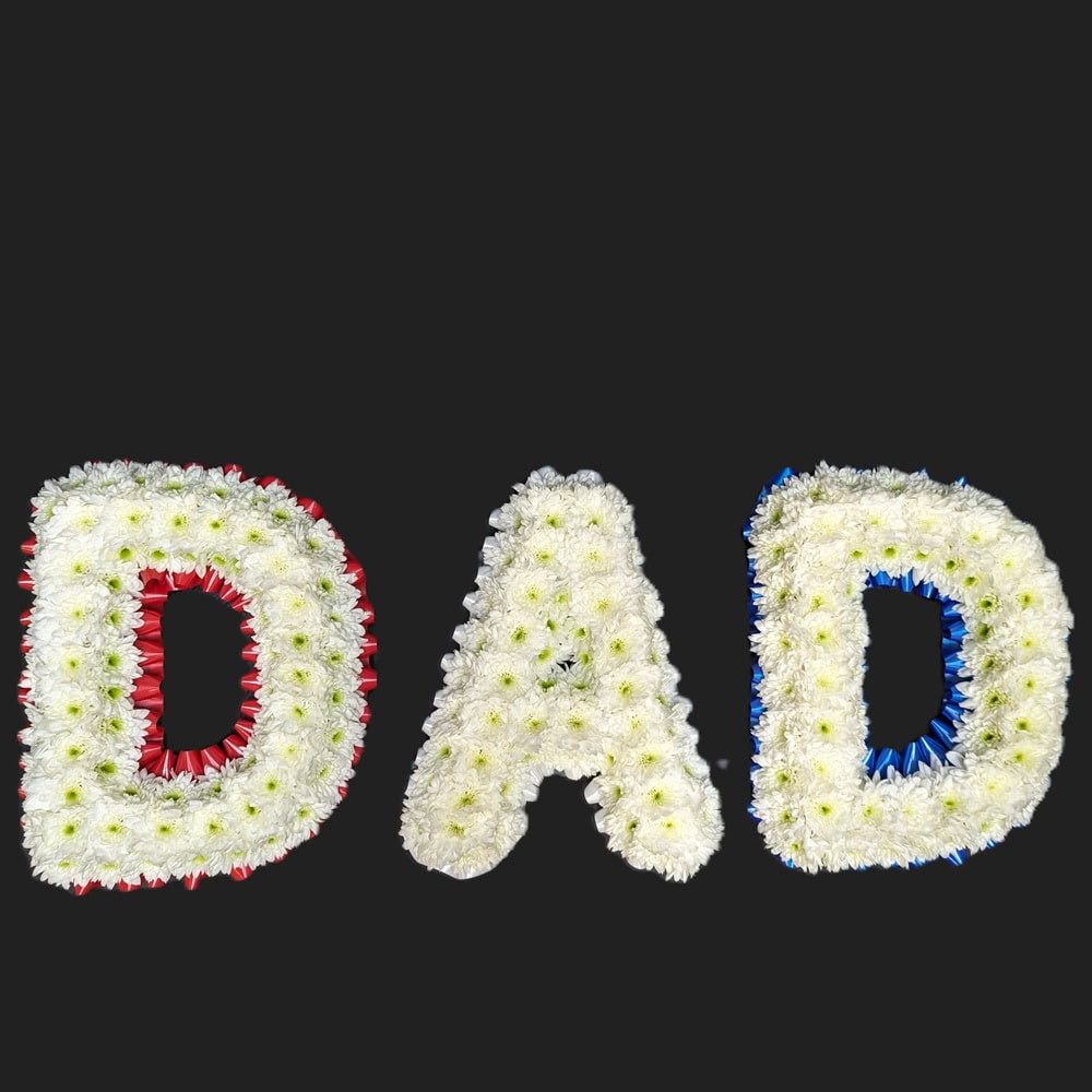 The letters you can see in the picture show a DAD arrangement without a Flower Cluster. Please view our full ranger of Funeral letters here to see more options